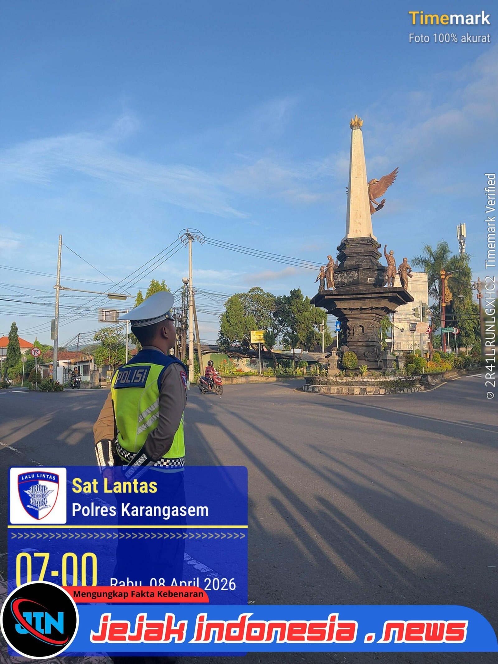 Polda Bali – Jejakindonesia.news // Polres Karangasem – Satuan Lalu Lintas – Pada hari rabu, 8 April 2026 pukul 06.30 Wita untuk tetap menjaga dan menciptakan kelancaran arus lalu lintas di seputaran Ktl 2 simpang tiga Kodim personil satuan Lalu Lintas Polres Karangasem melaksanakan pemantauan, pengaturan dan penjagaan dipos Ktl 2 simpang tiga Kodim. Kehadiran Polisi Lalu Lintas Polres Karangasem di jalan sangat penting utamanya untuk melaksanakan penjagaan dan pengaturan lalu lintas guna tetap menjaga kelancaran arus lalu lintas serta meniadakan kemacetan diseputaran pos Ktl 2 simpang tiga Kodim yang cukup rawan arus lalu lintasnya.