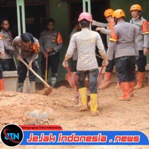 Tidak hanya fokus pada pembukaan jalan, personel di lapangan juga membantu warga yang rumahnya dipenuhi material longsor. Warga dan petugas tampak bergotong-royong membersihkan lumpur agar rumah kembali layak dihuni dan aman dari ancaman susulan.