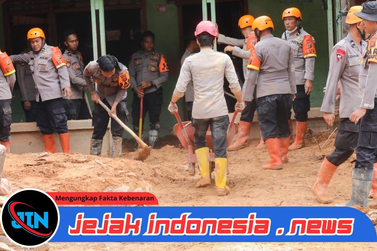 Tidak hanya fokus pada pembukaan jalan, personel di lapangan juga membantu warga yang rumahnya dipenuhi material longsor. Warga dan petugas tampak bergotong-royong membersihkan lumpur agar rumah kembali layak dihuni dan aman dari ancaman susulan.