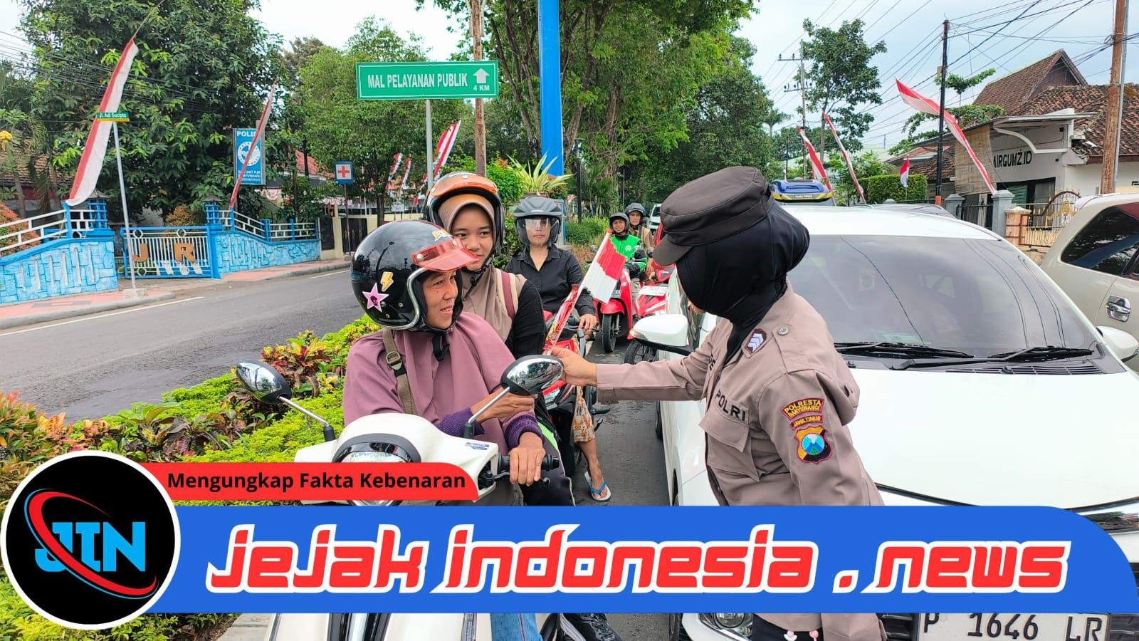 BANYUWANGI – Jejakindonesia.news|Seluruh anggota Polisi Wanita (Polwan) Polresta Banyuwangi Polda Jawa Timur menggelar kegiatan simpatik dengan membagikan cokelat kepada para pengguna jalan di Simpang Empat Patung Kuda, Banyuwangi, Selasa (26/8).
