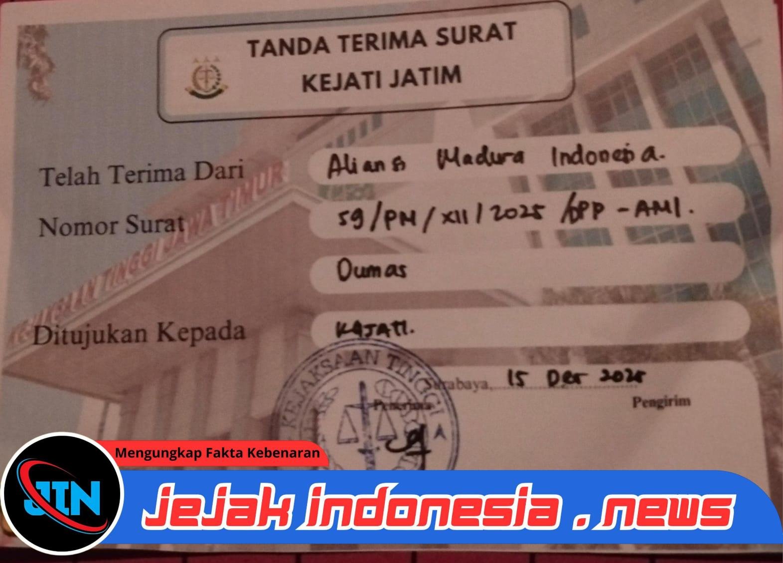 “Ini bukan kesalahan prosedur biasa. Ini kejahatan jabatan yang mempertaruhkan nyawa masyarakat. Kami meminta Kejati Jawa Timur bertindak tegas, profesional, dan transparan. Negara tidak boleh kalah oleh oknum Dinas Perhubungan yang bermain di balik kewenangan,” tegas Baihaki.