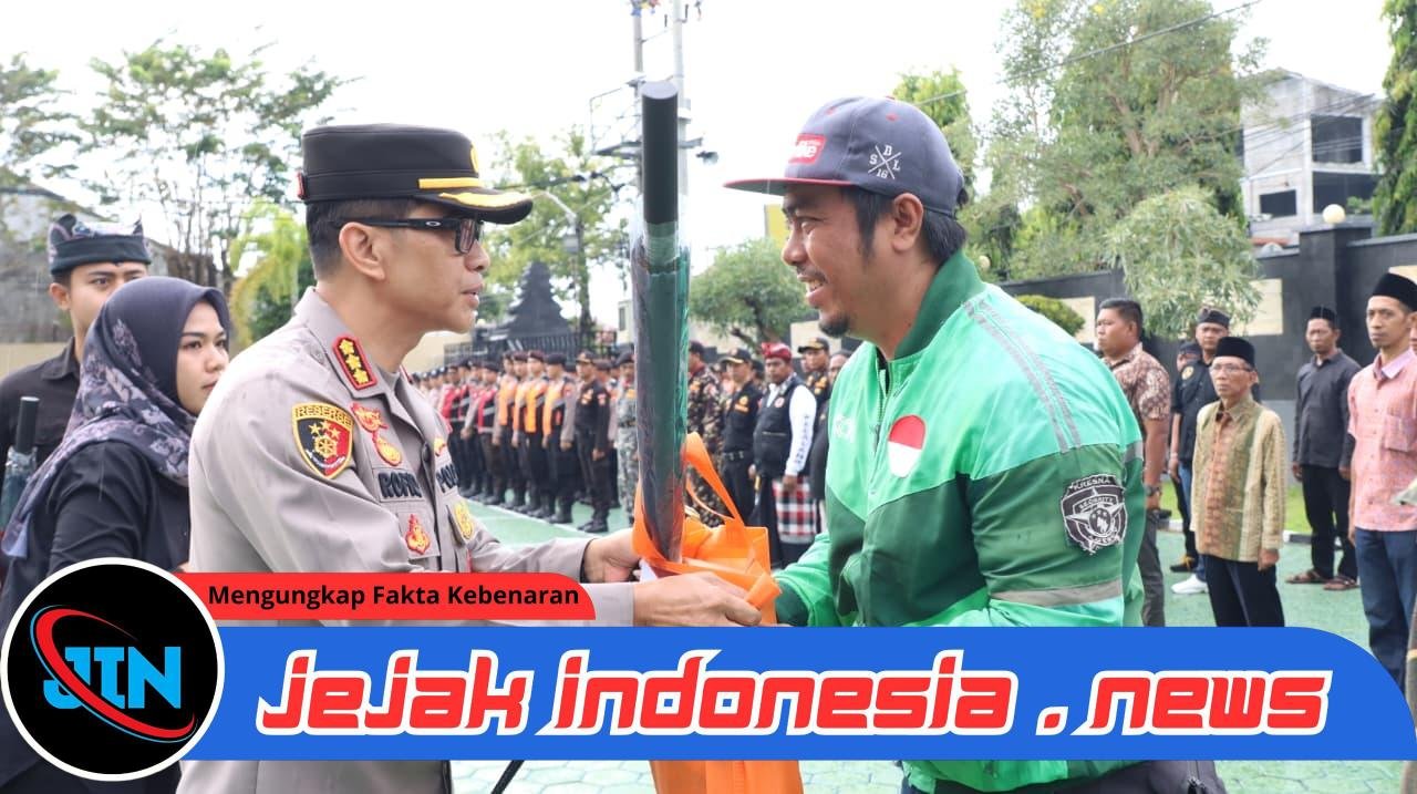 Kapolresta Banyuwangi dalam amanatnya menyampaikan pesan Kapolda Jawa Timur agar seluruh elemen masyarakat terus bersatu menjaga stabilitas keamanan di wilayah Banyuwangi.
