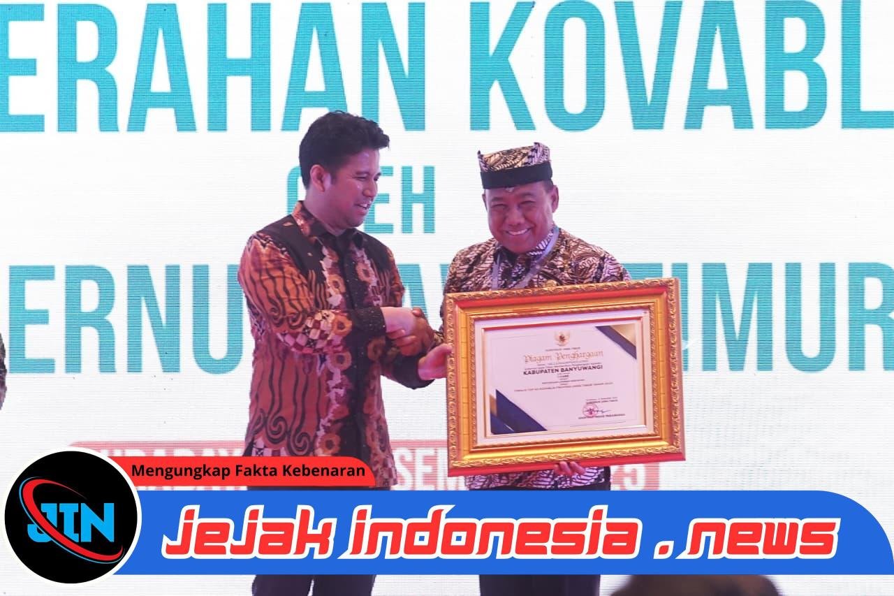 Penghargaan tersebut diserahkan oleh Wakil Gubernur Jatim Emil Elestianto Dardak kepada Wakil Bupati Banyuwangi Mujiono, di Surabaya dalam acara penyerahan Penghargaan Kovablik 2025, Jumat (12/12/2025).
