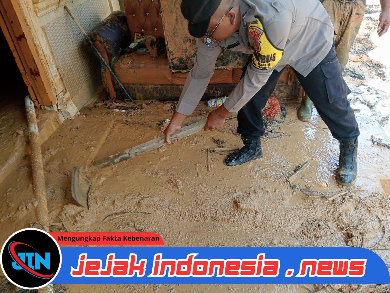 > “Bhabinkamtibmas selalu hadir untuk membantu meringankan beban warga binaan, khususnya pasca bencana. Selain membantu pembersihan rumah, personel juga terus memberikan imbauan kamtibmas agar masyarakat tetap waspada terhadap potensi bencana susulan,” jelasnya.