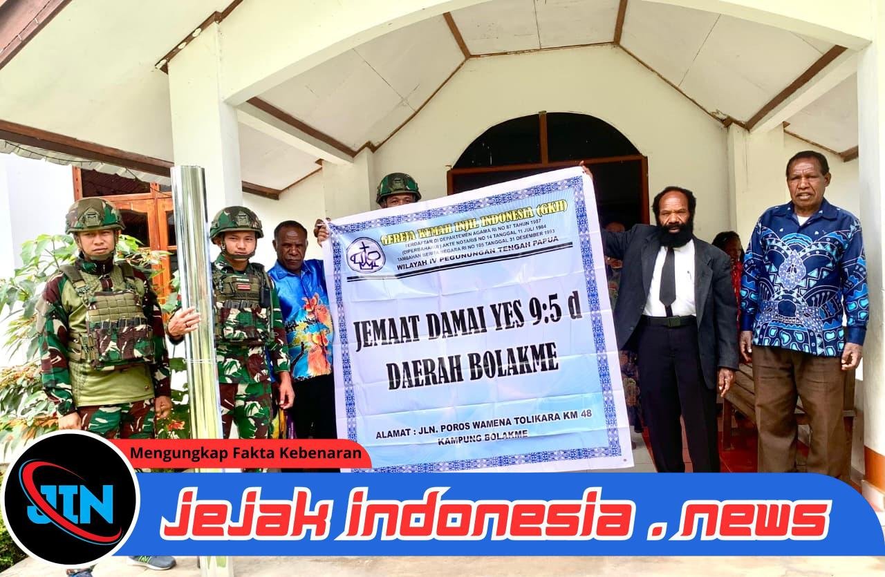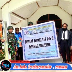 Dalam sebuah inisiatif yang menyentuh hati, Satgas Yonif 521/DY melalui Pos Bolakme turun langsung ke lapangan, bahu-membahu bersama jemaat lokal untuk memperbaiki papan nama Gereja Kemah Injil Indonesia (GKII) yang telah usang.