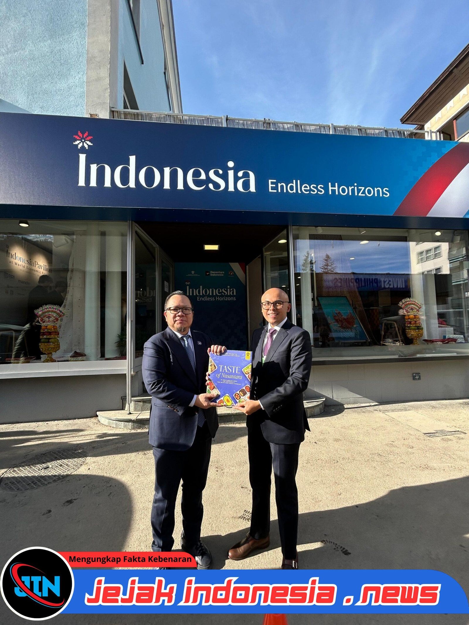 “Saya menyerahkan buku Rasa Bhayangkara Nusantara versi Bahasa Inggris kepada Bapak Stefanus Ade Hadiwidjaja, Managing Director, Investment, Danantara Indonesia, untuk ditampilkan di Paviliun Indonesia pada WEF Davos 2026 sebagai bagian dari showcase diplomasi MBG dan khazanah rasa Nusantara,” ujar Dirgayuza Setiawan.
