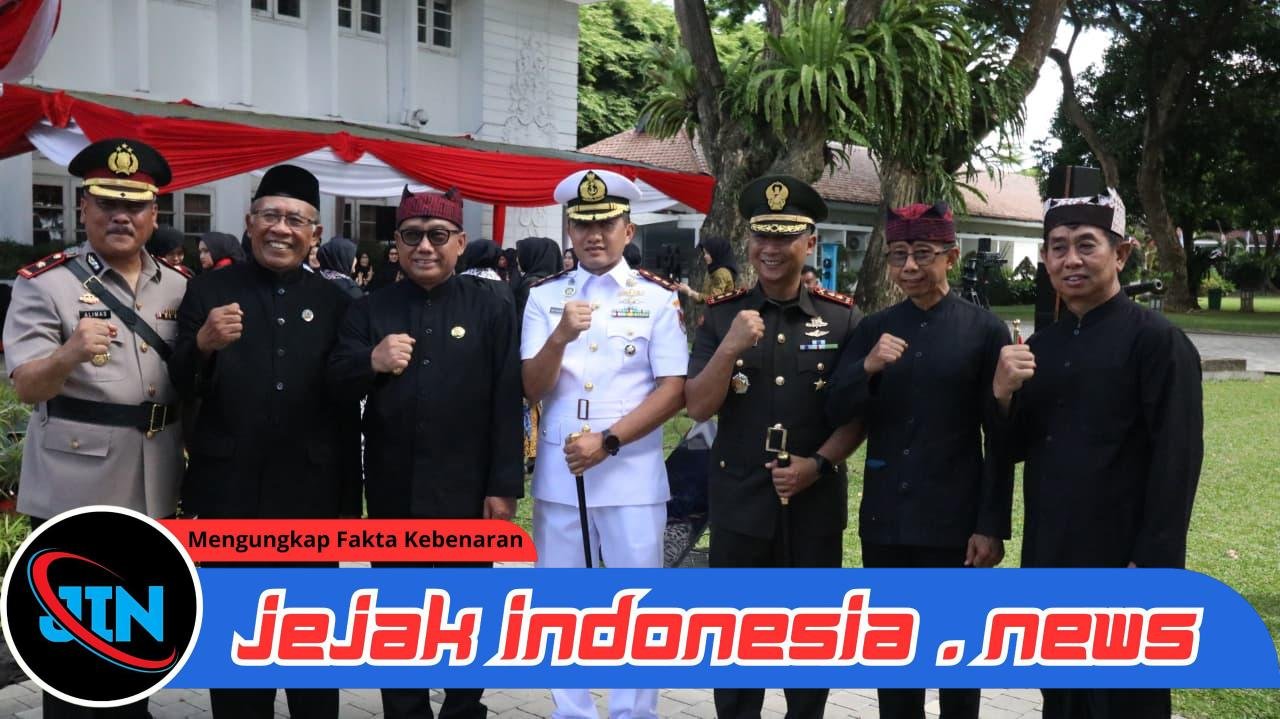 Banyuwangi – Jejakindonesia.news | Komandan Kodim 0825/Banyuwangi, Letkol (Arm) Triyadi Indrawijaya, S.H., M.I.P., menghadiri Upacara Peringatan Hari Jadi ke-80 Provinsi Jawa Timur Tahun 2025 yang digelar di Halaman Kantor Bupati Banyuwangi, Minggu (12/10/2025).