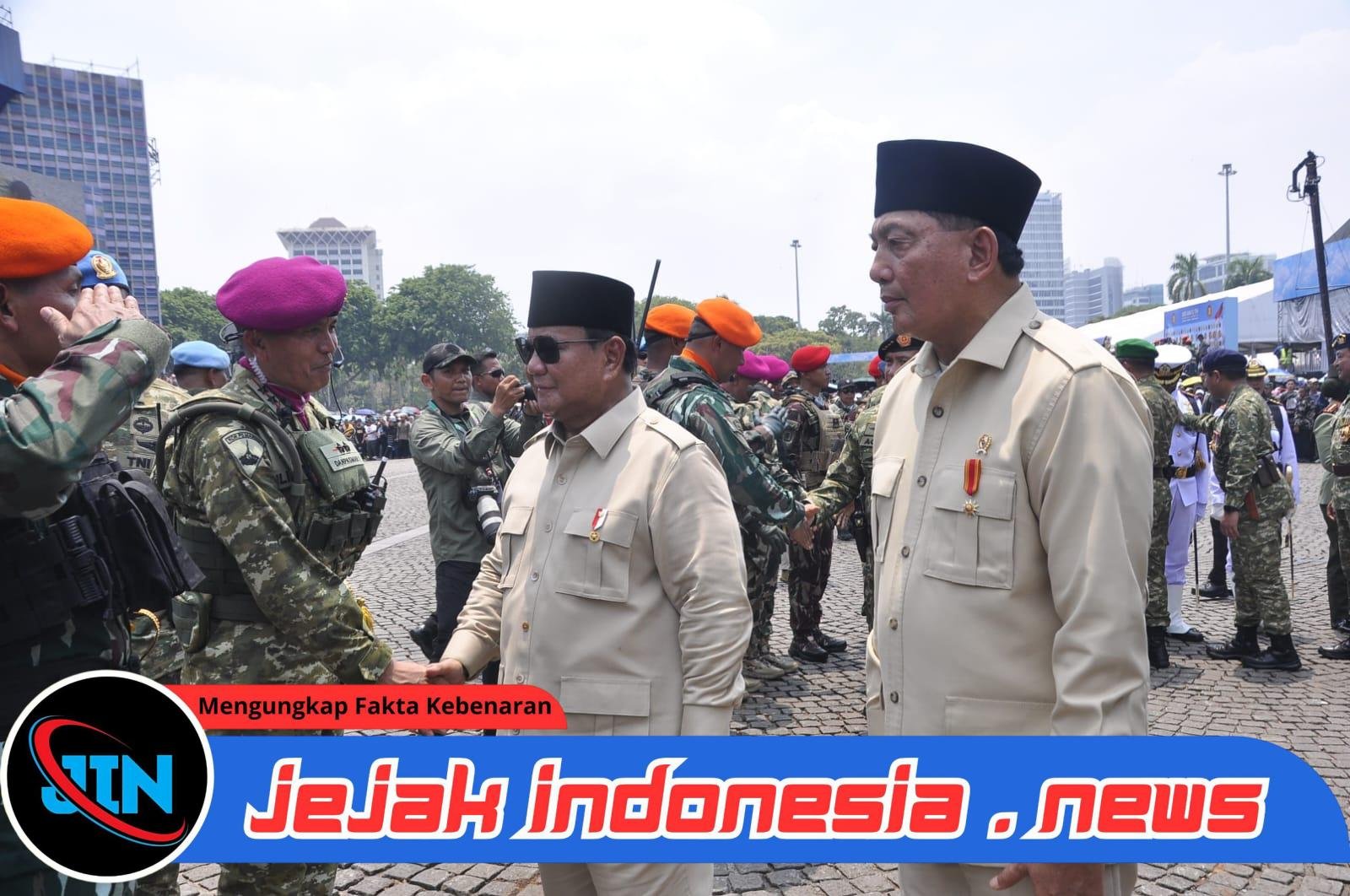 Jakarta – Jejakindonesia.news | Mayjen TNI (Mar) Ili Dasili, S.E., yang sehari-hari menjabat sebagai Komandan Pasmar 1 (Danpasmar 1) memimpin ribuan prajurit Jalasena TNI AL untuk memberikan penghormatan kepada Presiden Republik Indonesia Bapak Prabowo Subianto pada Upacara peringatan Hari Ulang Tahun (HUT) ke-80 TNI yang digelar di Lapangan Silang Monas, Jakarta Pusat, Minggu (05/10/2025).