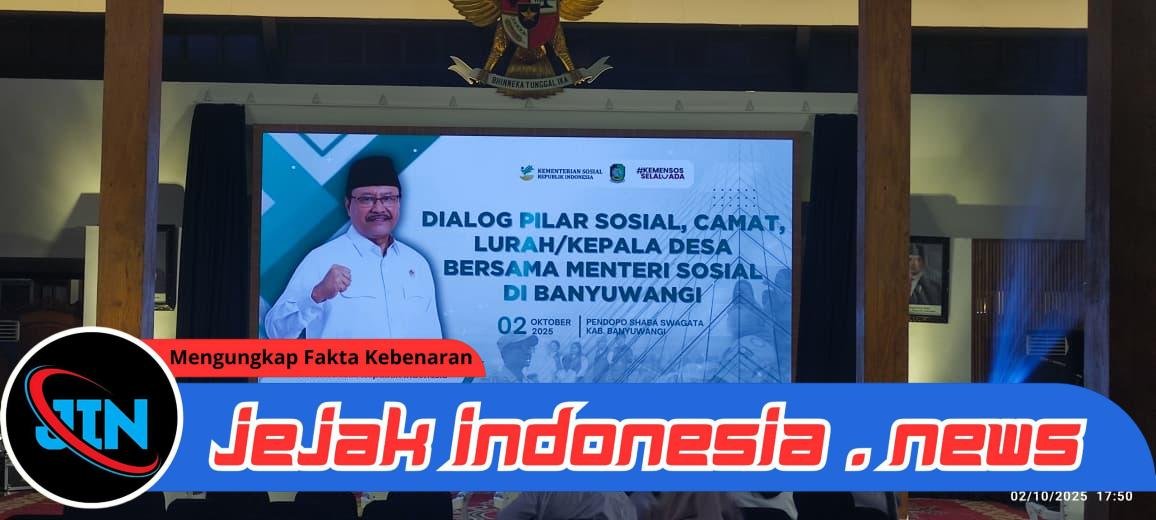 Banyuwangi – Jejakindonesia.news | Di sela kunjungan kerjanya ke Banyuwangi, 2-3 Oktober 2025, Menteri Sosial (Mensos) Saifullah Yusuf bertemu dengan para camat, lurah, dan kepala desa di Pendopo Sabha Swagatha Blambangan, Kamis malam (2/10/2025). Dalam kesempatan itu, Mensos mengajak mereka untuk berpartisipasi mensukseskan program digitalisasi bansos yang saat ini sedang diujicobakan di Banyuwangi.