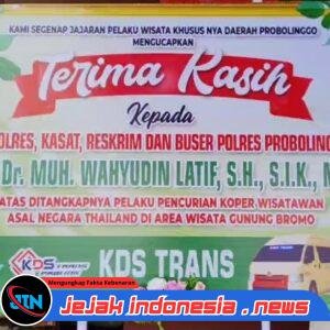 PROBOLINGGO – Jejakindonesia.news // Puluhan karangan bunga memenuhi halaman Polres Probolinggo Polda Jawa Timur pasca tertangkapnya komplotan pencuri koper milik wisatawan asal Thailand di kawasan wisata Gunung Bromo.