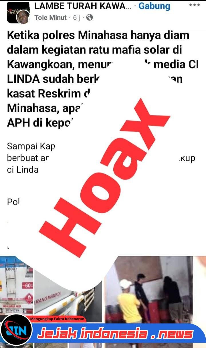 Minahasa,- Jejakindonesia.news // Tuduhan liar yang  nama Linda Humena sebagai “mafia BBM” melalui unggahan akun Facebook Lambe Turah Kawanua menuai bantahan keras. Postingan tersebut dinilai tidak hanya menyesatkan, tetapi juga diduga kuat mengandung unsur fitnah karena menggunakan materi lama untuk membangun opini seolah-olah kejadian masih berlangsung.