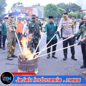 JEMBER – Jejakindonesia.news // Menyambut datangnya bulan suci Ramadan, jajaran Forum Komunikasi Pimpinan Daerah (Forkopimda) Kabupaten Jember menggelar pemusnahan ribuan barang bukti hasil tindak pidana, Kamis (26/2/2026).