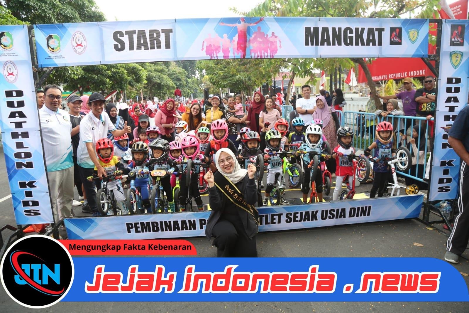 BANYUWANGI — Jejakindonesia.news| Sebanyak 30 anak tingkat PAUD dan TK mengikuti lomba “Duathlon Kids” yang berlangsung pada momen CFD di Jalan A. Yani Minggu pagi (31/8/2025). Lomba ini menggabungkan olahraga push bike dengan olahraga atletik halang rintang.
