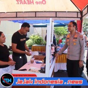 Momen hangat terlihat saat Kapolres menyapa satu per satu pelaku usaha. Beliau berdialog langsung, menanyakan produk yang dijual, hingga memberikan motivasi agar para pelaku UMKM tetap semangat dalam berinovasi dan mengembangkan usahanya. Kapolres juga tampak sesekali mencicipi kuliner yang ditawarkan, yang disambut antusias oleh para pedagang.