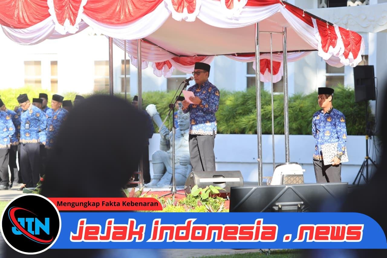 BANYUWANGI – Jejakindonesia.news // Wakil Bupati Banyuwangi Mujiono memimpin langsung upacara peringatan Hari Kesadaran Nasional (HKN) di halaman Kantor Bupati Banyuwangi, Jumat (17/4/2026). Mujiono meminta agar seluruh jajaran ASN di lingkungan Pemkab Banyuwangi semakin adaptif dan responsif terhadap tuntutan masyarakat yang semakin dinamis.