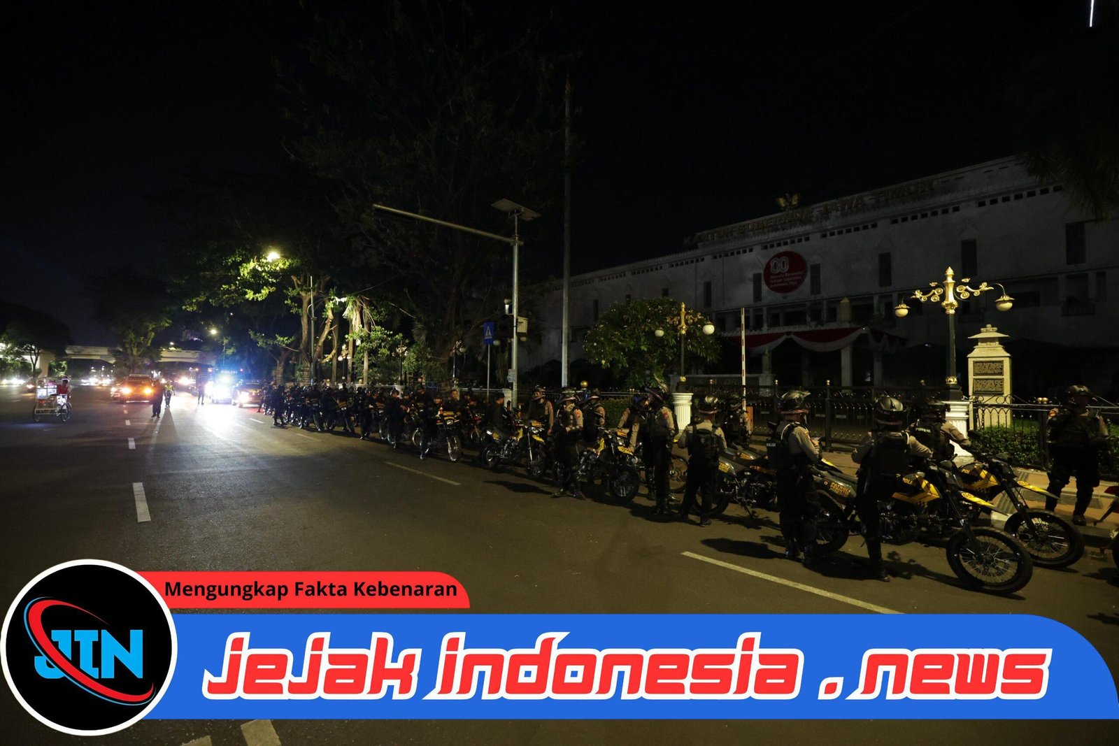 Selama patroli berlangsung, personel melakukan pemantauan situasi lalu lintas, pusat keramaian, hingga titik rawan yang berpotensi menjadi lokasi kumpul massa.
