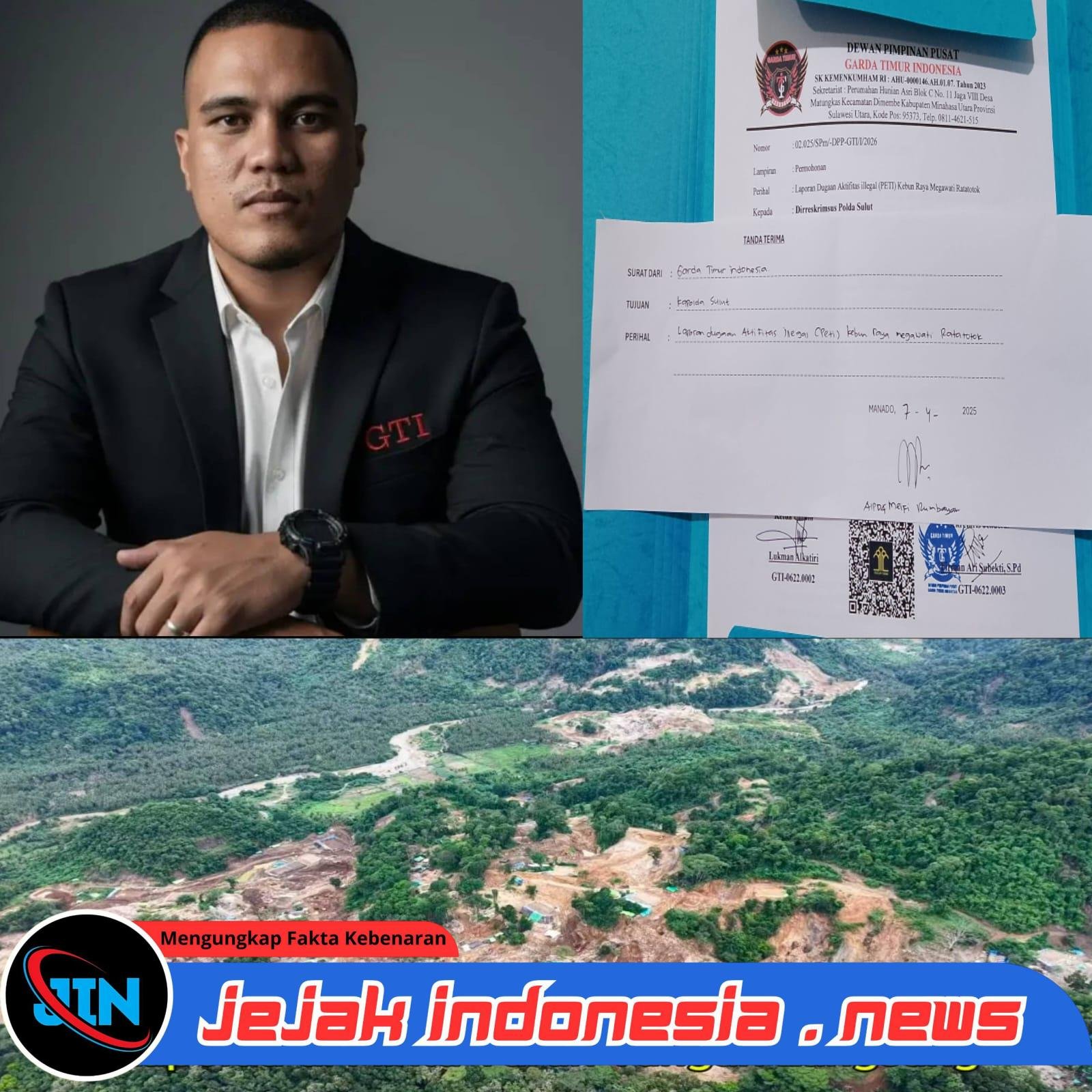 MITRA — Jejakindonesia.news // Kesabaran publik tampaknya sudah di ujung batas. Ketua Umum LSM GTI, Fikri Alkatiri, secara resmi mengguncang Mapolda Sulawesi Utara dengan laporan keras terkait dugaan aktivitas Pertambangan Emas Tanpa Izin (PETI) yang masih bebas beroperasi di kawasan Kebun Raya Megawati Ratatotok, Selasa (7/4/2026).