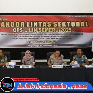 BANYUWANGI – Jejakindonesia.news // Kabupaten Banyuwangi diprediksi akan kembali menjadi salah satu daerah jujugan wisatawan selama masa libur Natal dan Tahun Baru (Nataru) 2026. Mempersiapkan hal itu, Polresta Banyuwangi menggelar rapat koordinasi (rakor) Operasi Lilin Semeru, yang dihadiri lintas sektor, di Polresta Banyuwangi, Selasa (16/12/2025).