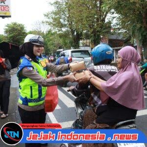 MALANG – Jejakindonesia.news // Polres Malang tetap konsisten membagikan takjil gratis kepada masyarakat di hari-hari terakhir bulan Ramadan. Kegiatan tersebut menyasar para pengendara yang melintas di depan Mapolres Malang, Rabu (18/3/2026).
