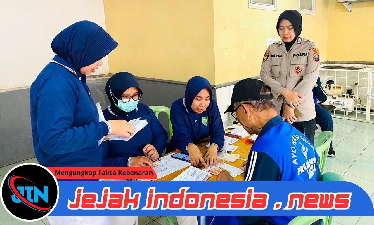 Para Polwan yang hadir mendampingi peserta yang mengalami keterbatasan fisik, termasuk mendorong kursi roda bagi penderita stroke, hingga membantu proses pendaftaran dan pemeriksaan medis.