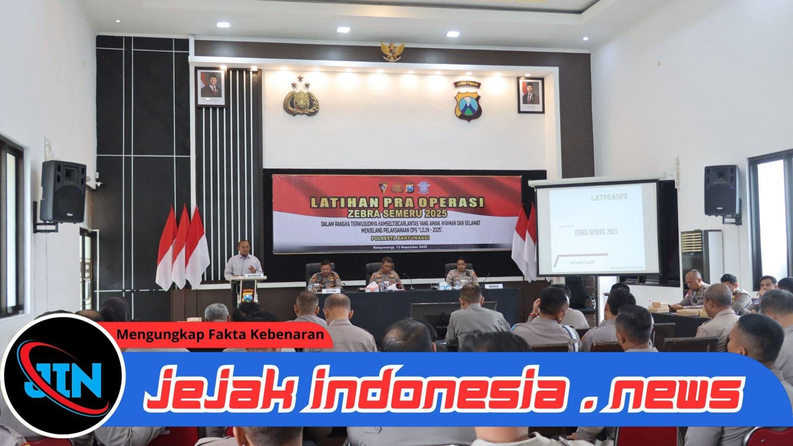 Banyuwangi – Jejakindonesia.news|Dalam rangka meningkatkan keselamatan dan ketertiban berlalu lintas, Polresta Banyuwangi menggelar Latihan Pra Operasi (Latpraops) “Zebra Semeru 2025” di Rupatama Mapolresta Banyuwangi, Kamis (13/11/2025).