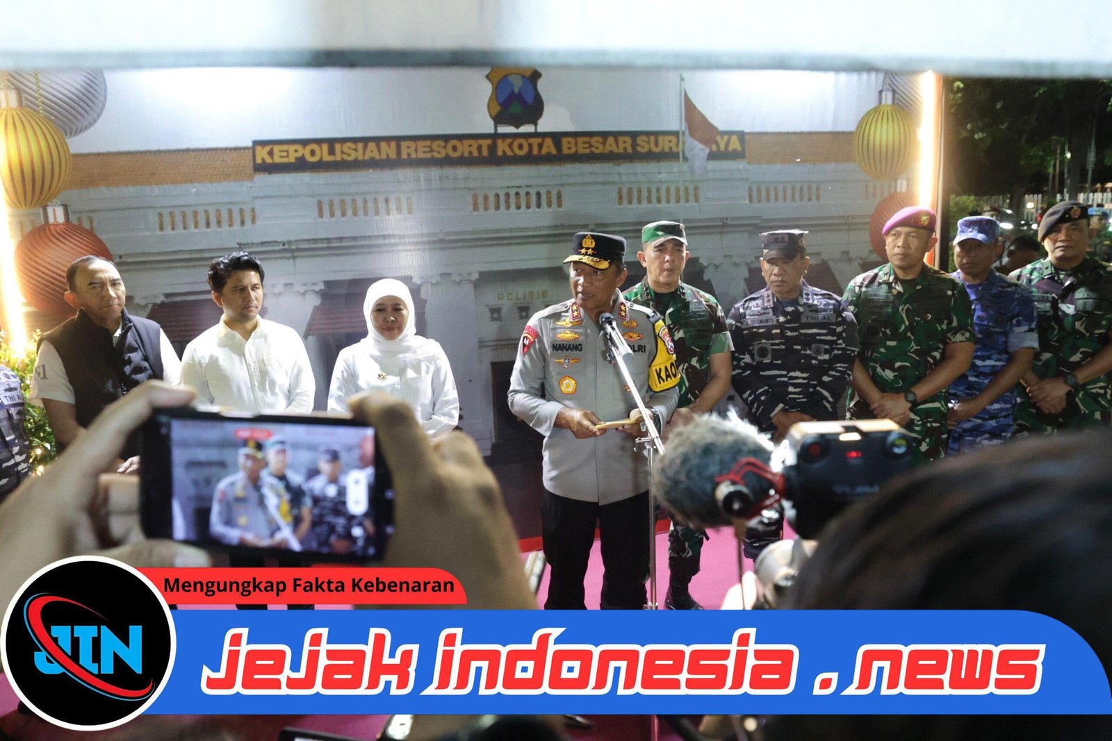Pemantauan dilakukan di Pos Pengamanan Bundaran Cito dan Pos Taman Bungkul untuk memastikan situasi keamanan dan ketertiban masyarakat (kamtibmas) tetap kondusif menjelang detik-detik pergantian tahun.