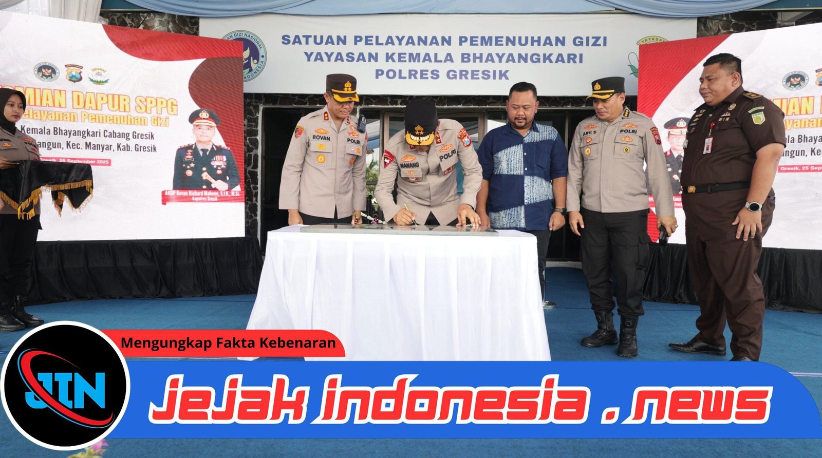 Surabaya – Jejakindonesia.news | Kapolda Jawa Timur Irjen Pol Drs. Nanang Avianto, M.Si., bersama Pejabat Utama Polda Jatim, meresmikan Dapur Satuan Pelayanan Pemenuhan Gizi (SPPG) di Desa Yosowilangun, Kecamatan Manyar, Kabupaten Gresik, Kamis (25/9/2025).