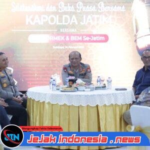 SURABAYA – Jejakindonesia.news // Kapolda Jawa Timur, Irjen Pol Drs.Nanang Avianto, M.Si silaturahmi dan buka puasa bersama Badan Eksekutif Mahasiswa (BEM), Organisasi Mahasiswa Ekstra Kampus (Ormek) serta Organisasi Kemasyarakatan Pemuda (OKP) se-Jawa Timur di Selasar Gedung Patuh Mapolda Jatim, Selasa (23/2/2026).