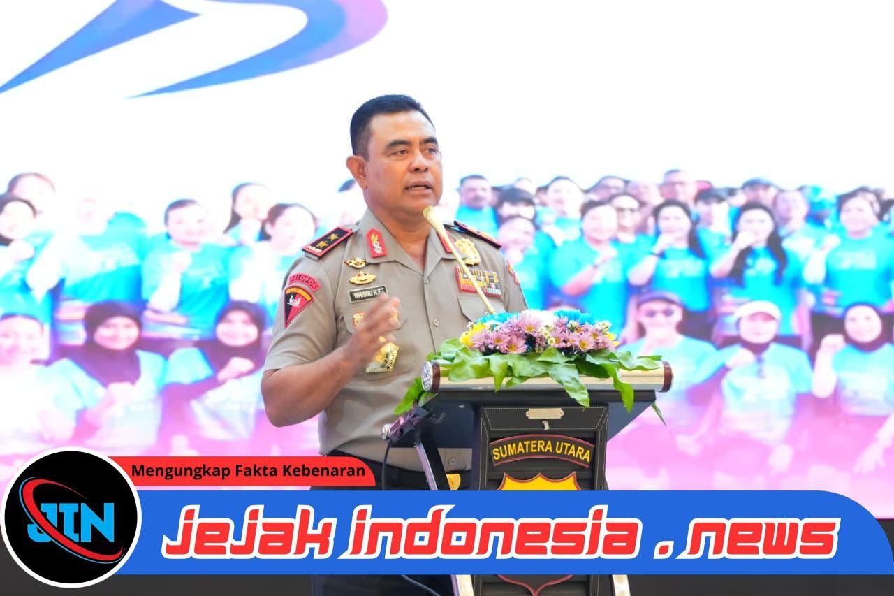 Dalam sambutannya, Kapolda Sumut menyampaikan bahwa keikutsertaan dalam Kemala Run 2026 bukan sekadar ajang kompetisi, melainkan momentum mempererat kebersamaan dan soliditas keluarga besar Polda Sumut.