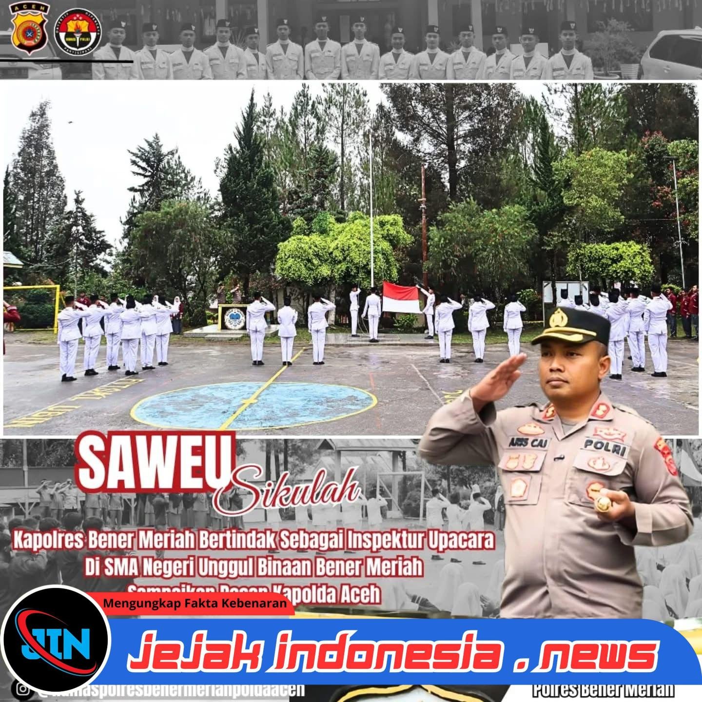 Bener Meriah – Jejakindonesia.news| Kapolres Bener Meriah bersama pejabat utama dan seluruh Kapolsek jajaran Polres Bener Meriah melaksanakan kegiatan Saweu Sikulah secara serentak di berbagai SMA sederajat di Kabupaten Bener Meriah, Senin (15/9/2025). Dalam kegiatan tersebut, para pejabat Polri bertindak langsung sebagai inspektur upacara sekaligus menyampaikan amanat Kapolda Aceh Irjen Pol Drs. Marjuki Ali Basyah, M.M.