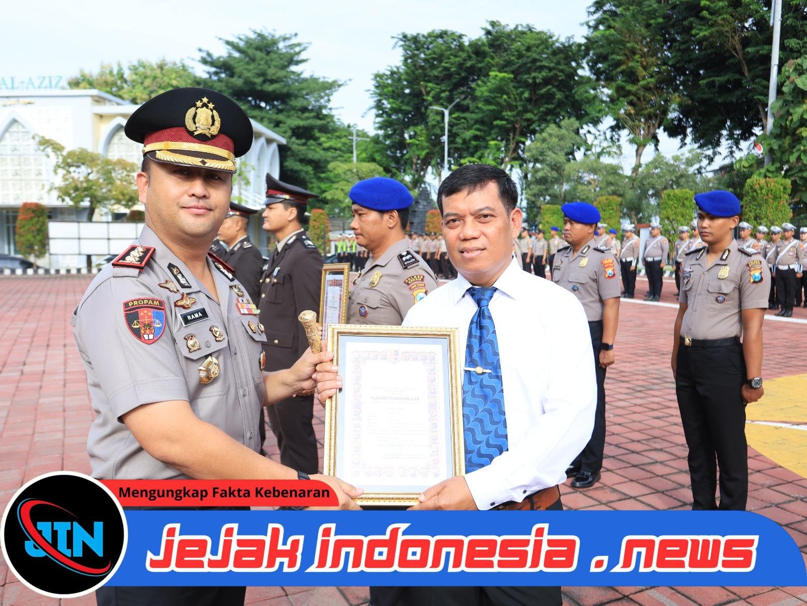 GRESIK – Jejakindonesia.news // Kepolisian Resor (Polres) Gresik menggelar upacara pemberian penghargaan serta penyerahan tanda kehormatan kepada personel berprestasi di halaman Mapolres Gresik, Senin (26/1/2026) pagi.
