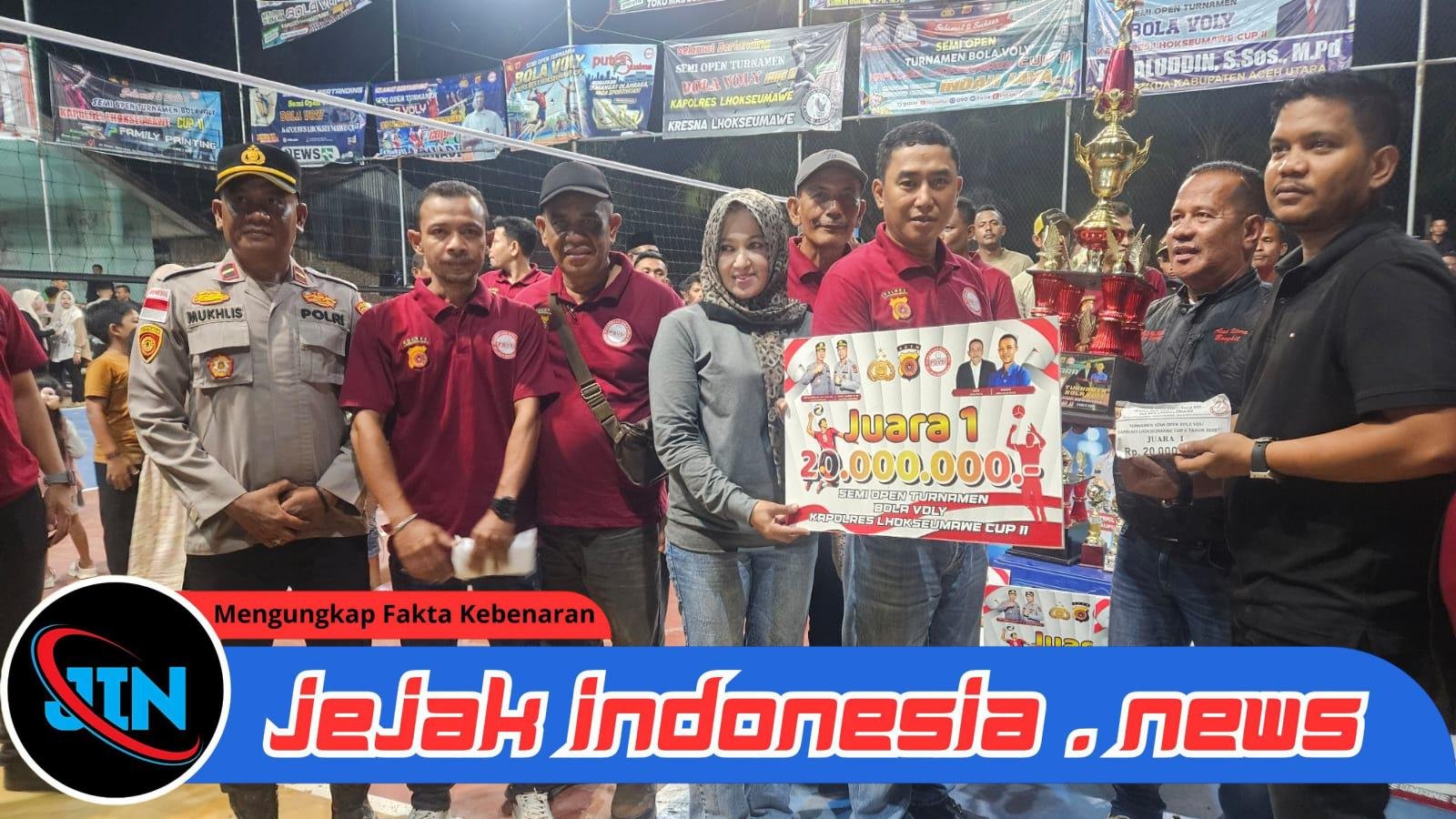 Lhokseumawe – Jejakindonesia.news // Turnamen Bola Voli Semi Open Piala Kapolres Lhokseumawe Cup II Tahun 2026 resmi ditutup dalam suasana meriah dan penuh sportivitas di lapangan voli Desa Tanjong, Kecamatan Meurah Mulia, Kabupaten Aceh Utara, Minggu (19/4/2026) malam.