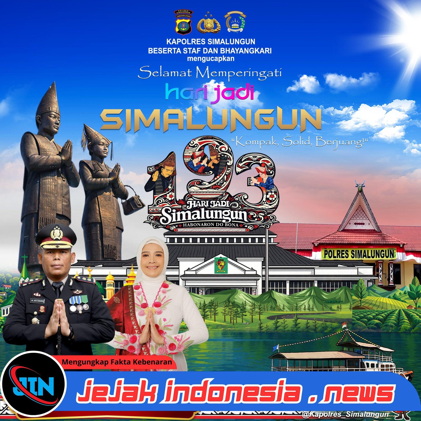 SIMALUNGUN — Jejakindonesia.news // Momentum bersejarah Hari Jadi Kabupaten Simalungun yang ke-193 tahun menjadi kesempatan bagi jajaran Polres Simalungun, Polda Sumatera Utara, untuk menegaskan kedekatan dan kebersamaan institusi Polri dengan masyarakat yang dicintainya. Kapolres Simalungun, AKBP Marganda Aritonang, S.H., S.I.K., M.M., didampingi Ibu Ny. Nanik M. Aritonang beserta seluruh staf dan Bhayangkari Polres Simalungun, dengan penuh kebanggaan dan kehangatan menyampaikan ucapan selamat kepada seluruh masyarakat Kabupaten Simalungun dalam peringatan hari bersejarah ini.