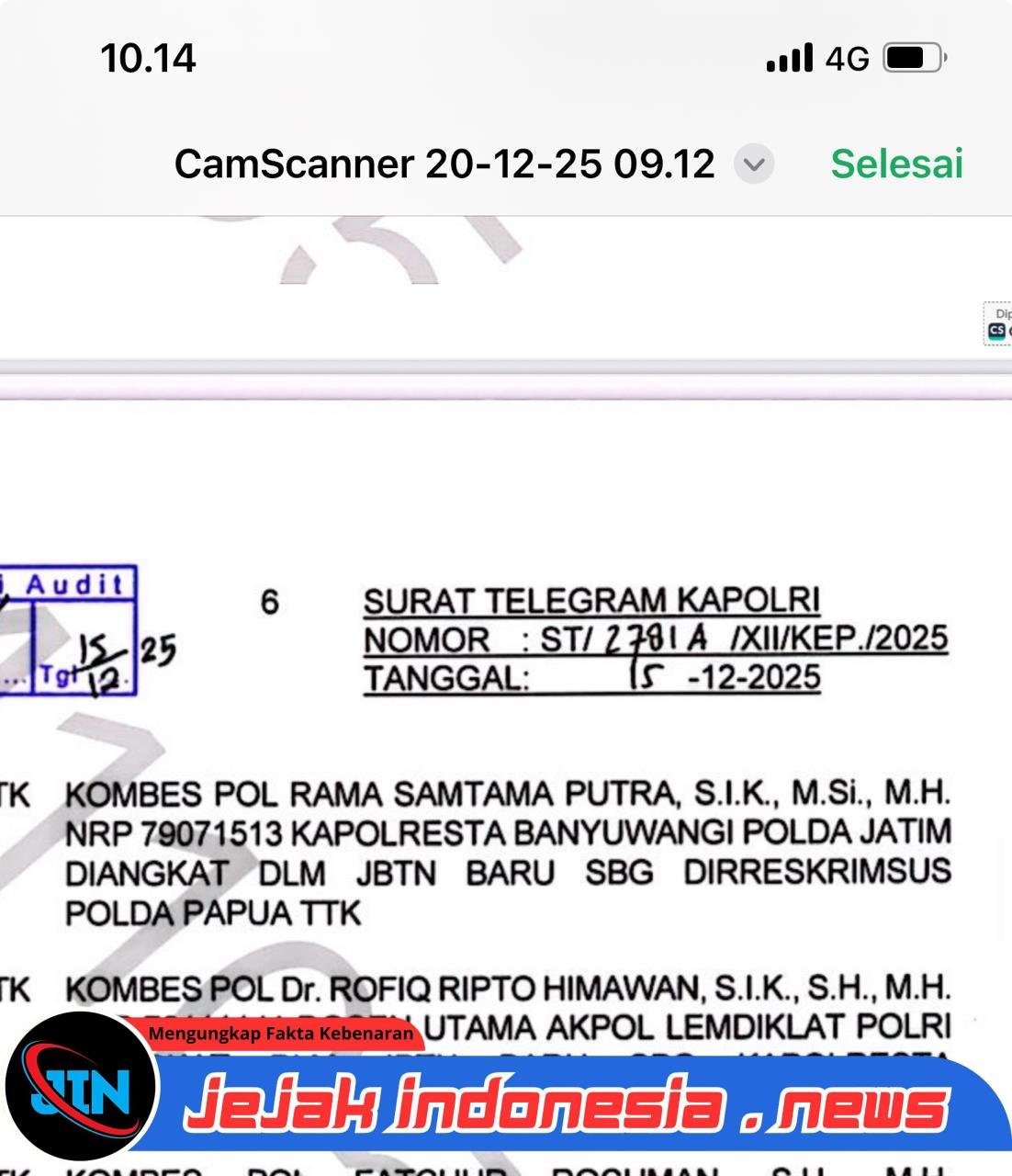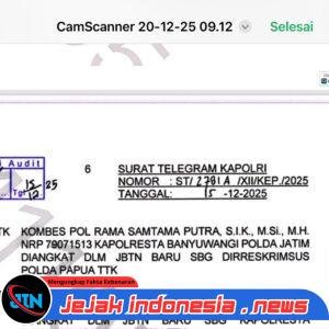 BANYUWANGIJejakindonesia.news // Kapolri kembali melakukan rotasi jabatan strategis di tubuh Polri. Melalui Surat Telegram Kapolri Nomor ST/2781A/XII/KEP./2025 tertanggal 15 Desember 2025, jabatan Kapolresta Banyuwangi Polda Jawa Timur resmi mengalami pergantian.