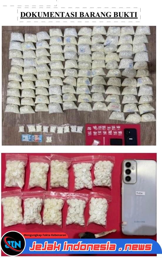 Dalam penggerebekan tersebut, petugas mengamankan barang bukti berupa 104.961 butir pil double L, 14 poket sabu dengan berat total 2,42 gram, satu unit timbangan elektrik, tiga bendel plastik klip kosong, satu alat sekrop dari sedotan, satu unit sepeda motor tanpa nomor polisi, dua unit telepon genggam, serta uang tunai sebesar Rp1 juta.