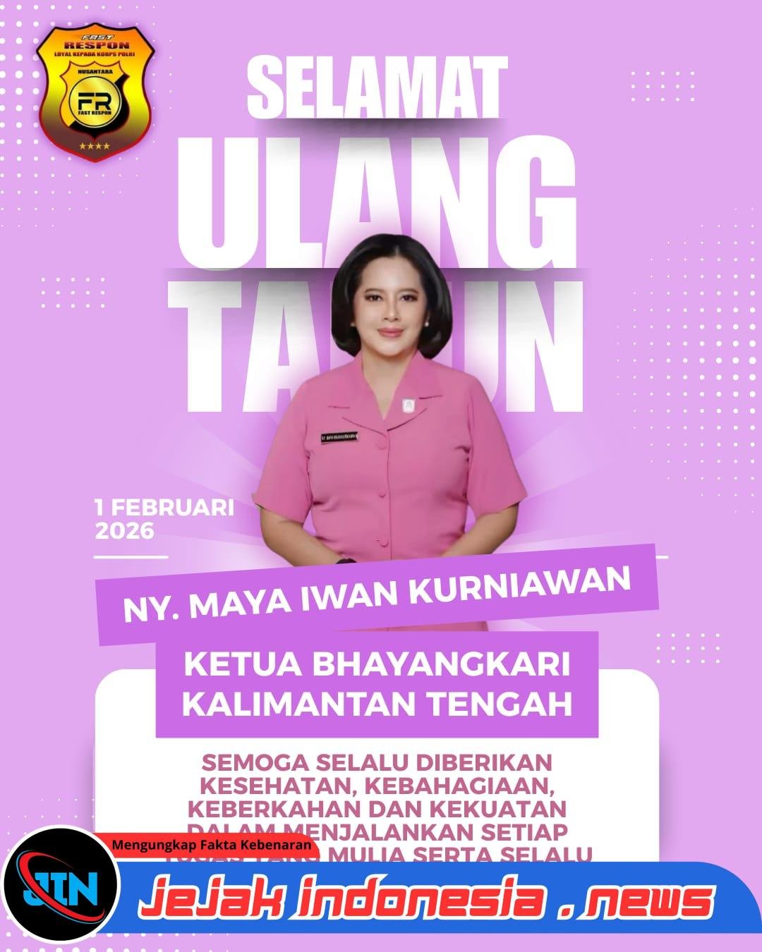 Jakarta, – Jejakindonesia.news // Ketua Umum Perkumpulan Wartawan Fast Respon (PW-FRN), Agus Flores, beserta seluruh jajaran pengurus menyampaikan ucapan selamat ulang tahun kepada Ketua Bhayangkari Daerah Kalimantan Tengah, Ny. Maya Iwan Kurniawan, yang merayakan hari kelahirannya pada hari ini, Minggu, 1 Februari 2026.