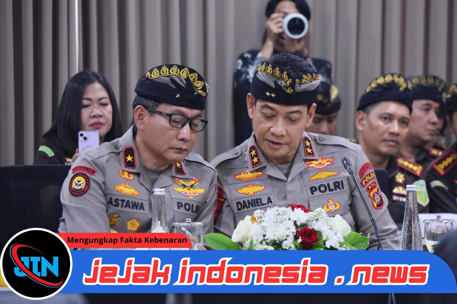 Bali – Jejakindonesia.news // Kapolda Bali, Irjen Pol. Daniel Adityajaya, didampingi Wakapolda Bali, Brigjen Pol. I Made Astawa, bersama sejumlah Pejabat Utama Polda Bali menghadiri rapat bersama Komisi III DPR RI dalam rangka monitoring tantangan pelaksanaan KUHP dan KUHAP pada masa persidangan IV Tahun 2025–2026. Kegiatan tersebut berlangsung di Kejaksaan Tinggi Bali, Jalan Tantular, Renon, Denpasar, Jumat (10/4/2026).