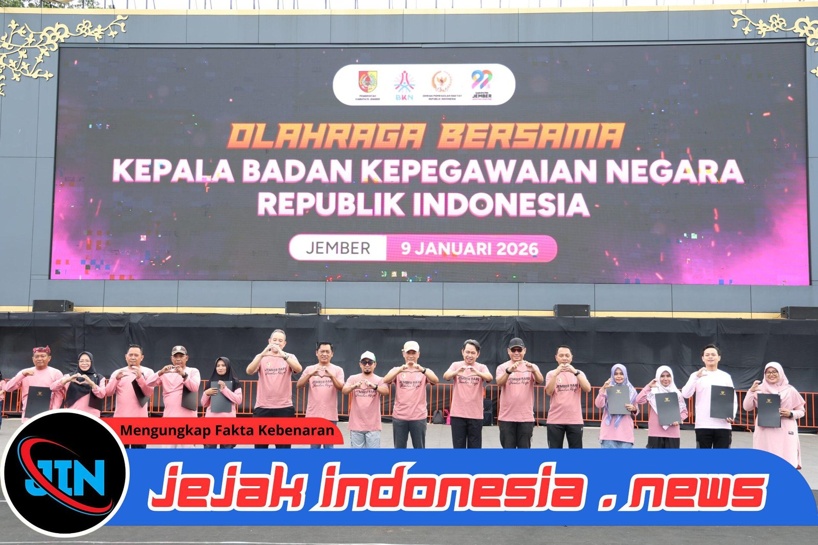 Jember – Jejakindonesia.news // Pemerintah Kabupaten Jember kembali menegaskan posisinya sebagai daerah yang berani mengambil langkah strategis dalam pengelolaan Aparatur Sipil Negara (ASN). Komitmen tersebut tercermin dalam kegiatan olahraga bersama Kepala Badan Kepegawaian Negara (BKN) Republik Indonesia, Prof. Dr. Zudan Arif Fakrulloh, yang digelar di Alun-Alun Nusantara Jember, Jumat (9/1/2026).