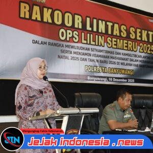 BANYUWANGI — Jejakindonesia.news // Pemerintah Kabupaten Banyuwangi bersama TNI, Polri, dan seluruh pemangku kepentingan menggelar Rapat Koordinasi (Rakor) Lintas Sektoral Operasi Lilin Semeru 2025 dalam rangka pengamanan Natal 2025 dan Tahun Baru 2026, Selasa (16/12/2025). Rakor yang berlangsung di Rupatama Polresta Banyuwangi, Jalan Brawijaya No.21, Kebalenan, ini diikuti sekitar 155 peserta lintas instansi dan dipimpin langsung Kapolresta Banyuwangi Kombes Pol Rama Samtama Putra, S.I.K., M.Si.