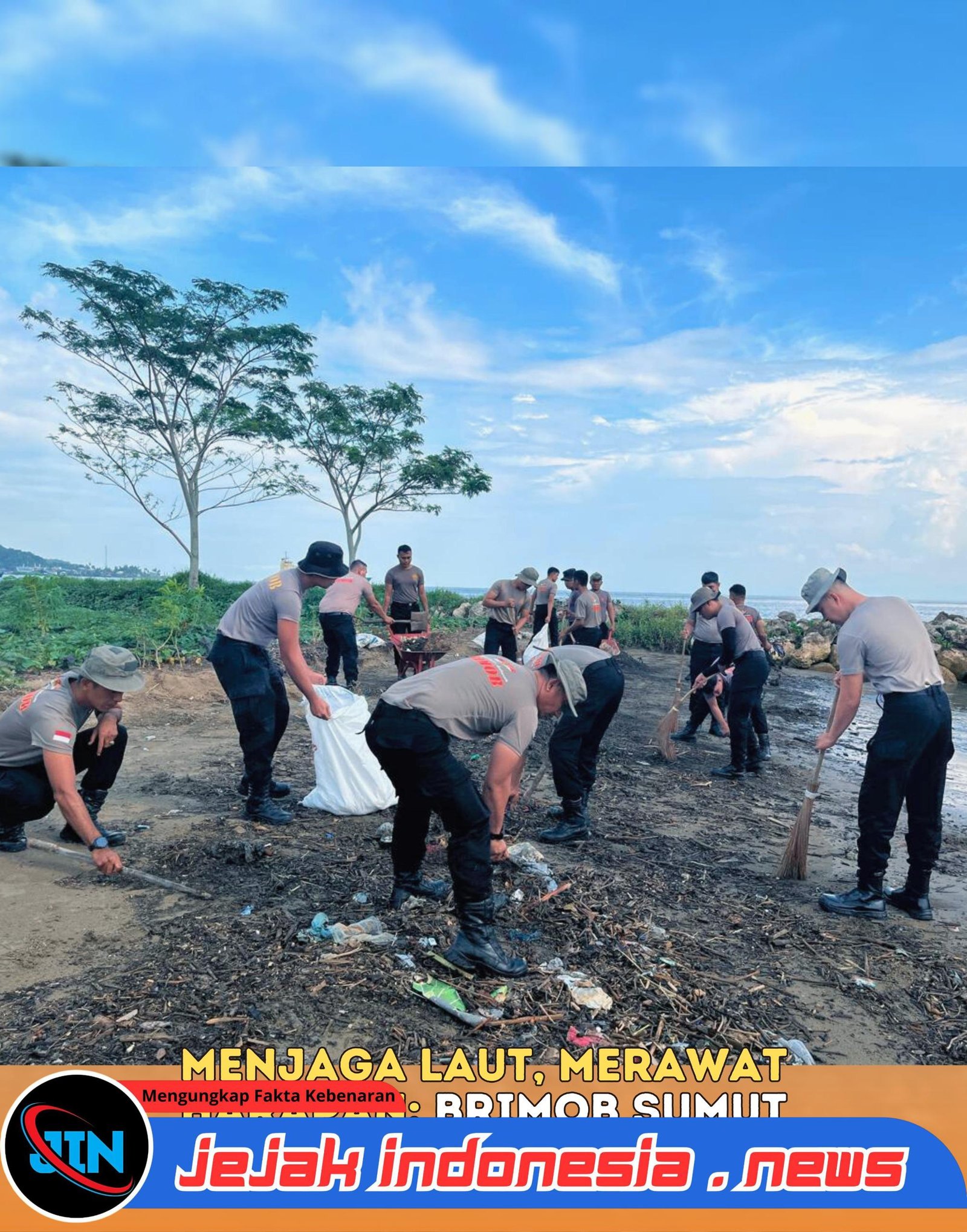 Gunungsitoli – Jejakindonesia.news // Personel Kompi 4 Batalyon C Satuan Brimob Polda Sumatera Utara melaksanakan kegiatan pembersihan sampah di kawasan Pantai Sirao, Kota Gunungsitoli, pada Rabu (4/2/2026). Kegiatan ini menjadi bagian dari upaya kepedulian Brimob terhadap kebersihan lingkungan sekaligus mendukung terciptanya ruang publik yang sehat dan nyaman bagi masyarakat.