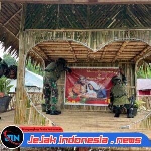Jayapura – Jejakindonesia.news // Tentara Nasional Indonesia (TNI) secara aktif terlibat dalam kegiatan bersama masyarakat di Papua untuk menyambut perayaan Natal, termasuk pembuatan pondok dan pohon Natal di Muaranawa, Distrik Airu, Jayapura (04/12/2025).