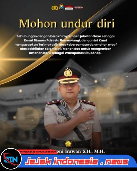 Melalui pesan terbuka yang disampaikan kepada Kapolresta Banyuwangi, Wakapolresta, para Pejabat Utama (PJU), serta seluruh Kapolsek jajaran Polresta Banyuwangi, Kompol Toni menyampaikan rasa terima kasih yang mendalam atas kebersamaan, dukungan, dan sinergi selama menjalankan tugas.