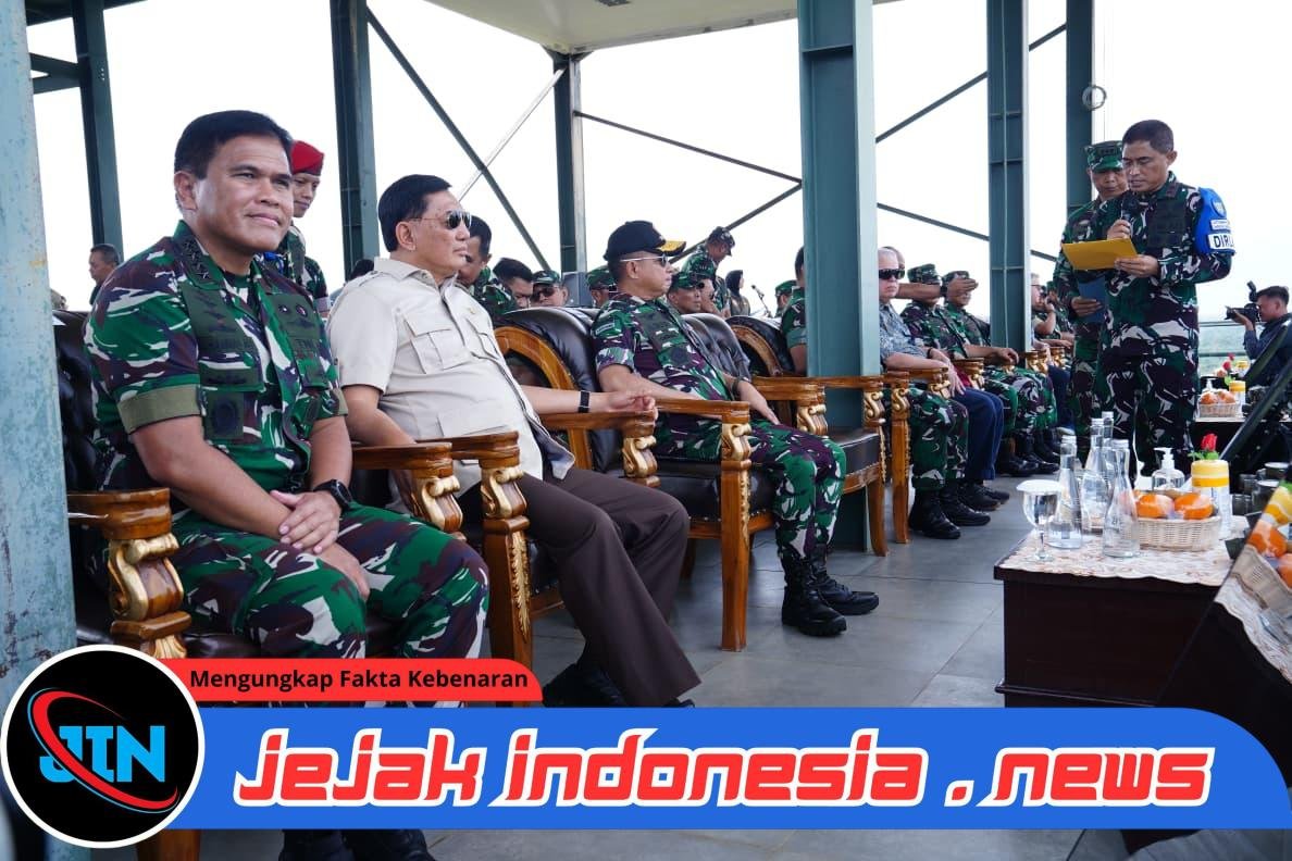 (Puspen TNI) – Jejakindonesia.news|Panglima TNI Jenderal TNI Agus Subiyanto mendampingi Menteri Pertahanan Republik Indonesia Sjafrie Sjamsoeddin meninjau langsung pelaksanaan Latihan Puncak Super Garuda Shield (SGS) 2025 yang digelar di Menara Tinjau Pusat Latihan Tempur (Puslatpur) Baturaja, Sumatera Selatan, Rabu (3/9/2025).
