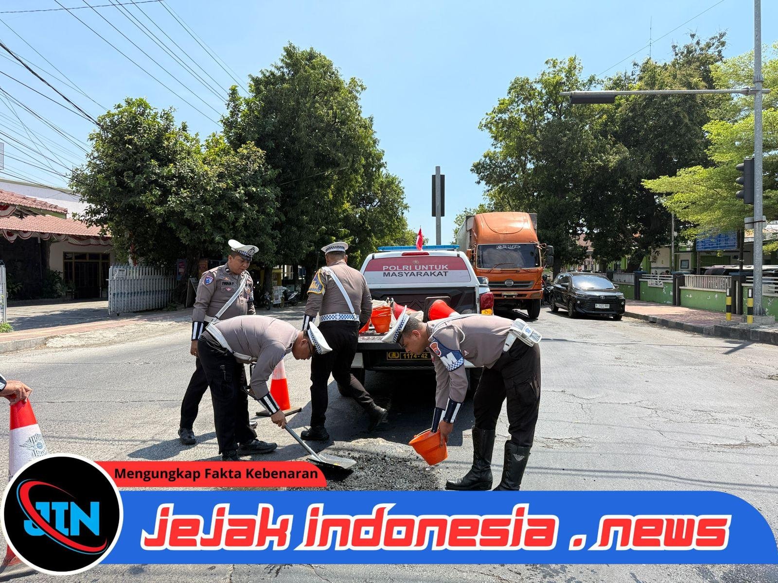SITUBONDO – Jejakindonesia.news|Satuan Lalu Lintas (Satlantas) Polres Situbondo Polda Jatim melaksanakan penambalan jalan berlubang di Simpang Empat Pos KTL Barat, Jalan Raya PB. Sudirman, Kecamatan Situbondo Kota.
