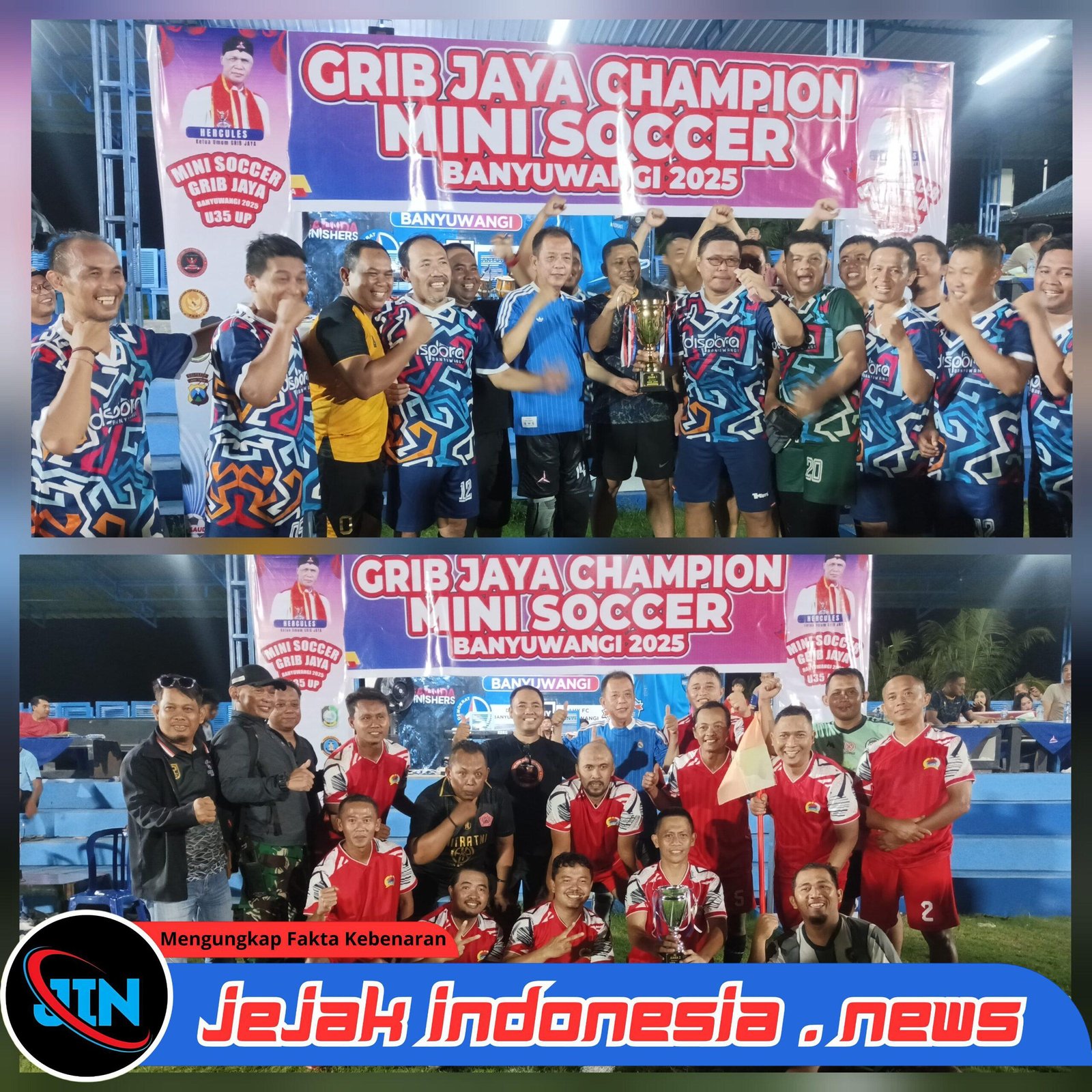 Banyuwangi — Jejakindonesia.news // Gelaran puncak Final Mini Soccer Grib Jaya Cup 2025 berlangsung meriah dan penuh ketegangan di Lapangan AHY FC, Desa Bubuk, Kecamatan Rogojampi, Kabupaten Banyuwangi, Rabu (10/12/2025). Dua tim kuat, Kodim 0825 Banyuwangi FC dan Pemkab Banyuwangi FC, saling unjuk kemampuan dalam pertandingan yang dinantikan ratusan pasang mata yang hadir langsung di lokasi.