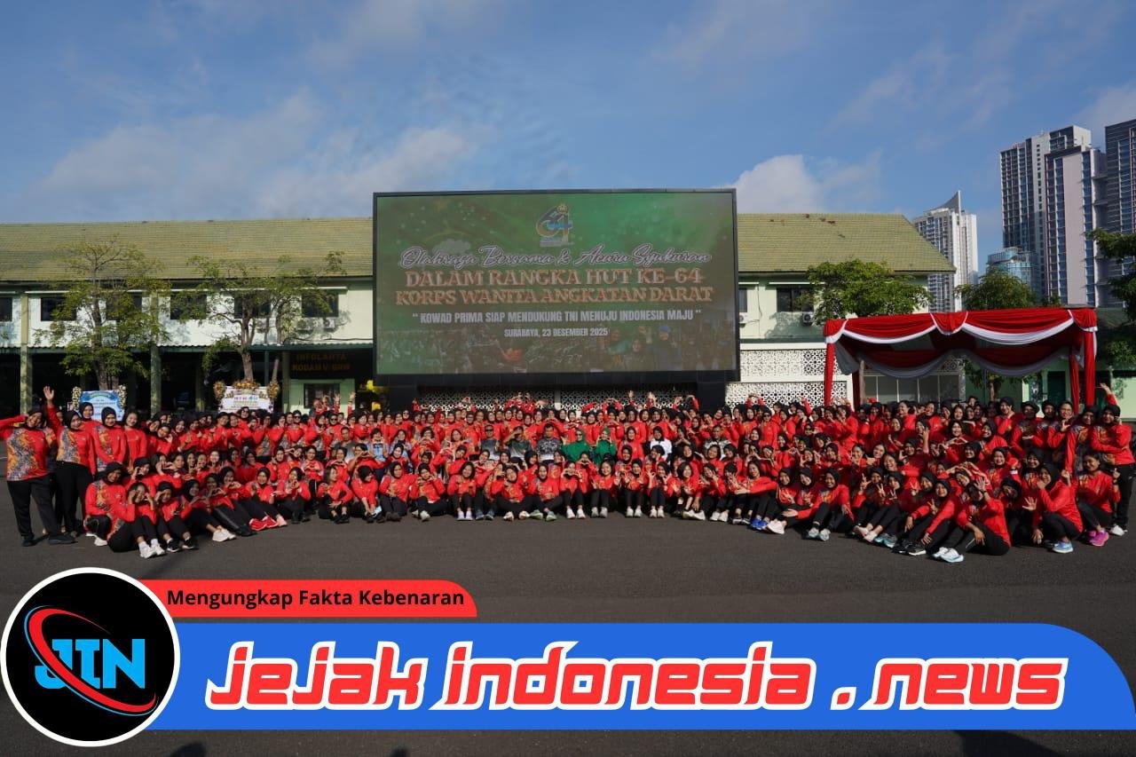 Surabaya — Jejakindonesia.news // Korps Wanita Angkatan Darat (Kowad) memperingati Hari Ulang Tahun (HUT) ke-64 dengan menggelar tasyakuran di Lapangan Hitam Kodam V/Brawijaya, Surabaya, Rabu (23/12/2025).
