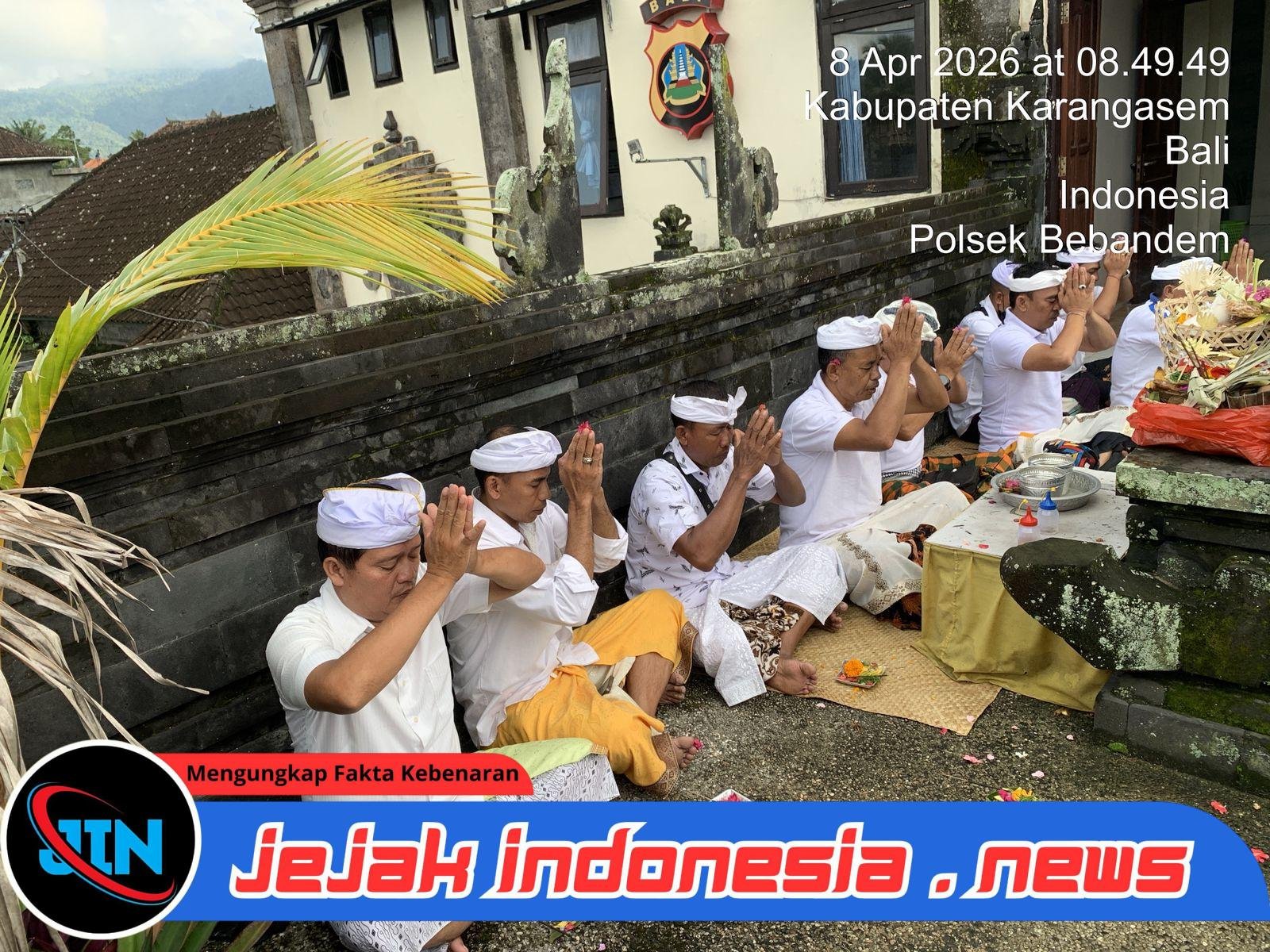 Bebandem – Jejakindonesia.news // Dalam rangka memperingati Hari Raya Pagerwesi yang jatuh pada Rabu (8/4/2026), jajaran Kepolisian Sektor (Polsek) Bebandem melaksanakan kegiatan persembahyangan bersama. Bertempat di Pura Padmasana Polsek Bebandem, kegiatan yang dimulai pukul 08.00 WITA ini diikuti oleh seluruh personel dengan suasana khidmat.