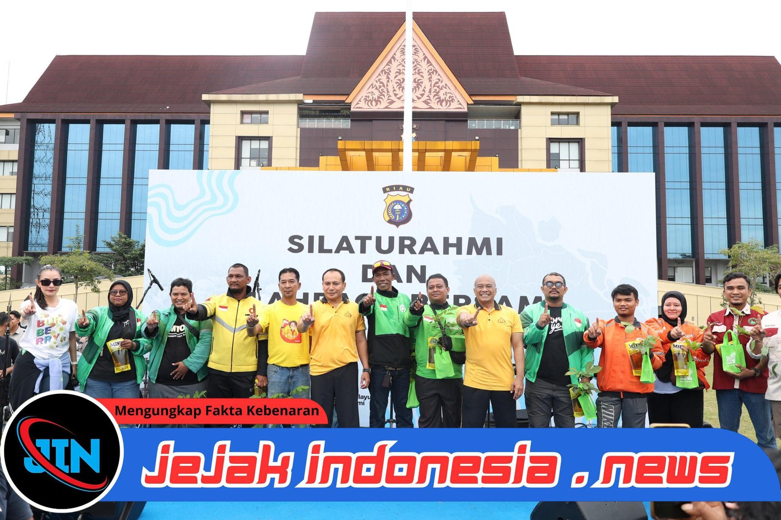 Pekanbaru – Jejakindonesia.news|Suasana hangat dan penuh kebersamaan tampak di halaman Mapolda Riau, Selasa (9/9/2025). Ratusan pengemudi ojek online (ojol) berkumpul bersama jajaran Kepolisian Daerah (Polda) Riau untuk memperkuat silaturahmi melalui kegiatan olahraga dan makan bersama serta berbagai kegiatan sosial.