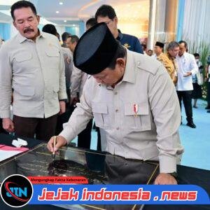 Jakarta,Jejakindonesia.news // Ada yang menarik pada acara penyerahan laporan capaian hasil Satuan Tugas Penertiban Kawasan Hutan (Satgas PKH) dan penyelamatan keuangan negara tahun 2025. Dalam acara yang digelar di Gedung Utama Kompleks Kejaksaan Agung Republik Indonesia, Jakarta, pada Rabu, 24 Desember 2025 tersebut, Presiden Prabowo Subianto menuliskan pesan khusus tentang integritas dan keberanian penegak hukum dalam sebuah prasasti.