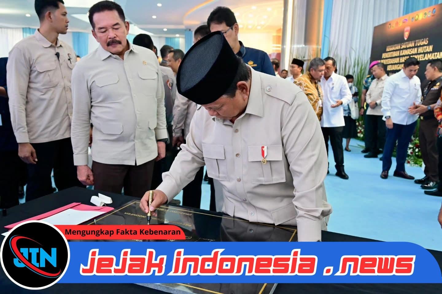 Jakarta,Jejakindonesia.news // Ada yang menarik pada acara penyerahan laporan capaian hasil Satuan Tugas Penertiban Kawasan Hutan (Satgas PKH) dan penyelamatan keuangan negara tahun 2025. Dalam acara yang digelar di Gedung Utama Kompleks Kejaksaan Agung Republik Indonesia, Jakarta, pada Rabu, 24 Desember 2025 tersebut, Presiden Prabowo Subianto menuliskan pesan khusus tentang integritas dan keberanian penegak hukum dalam sebuah prasasti.